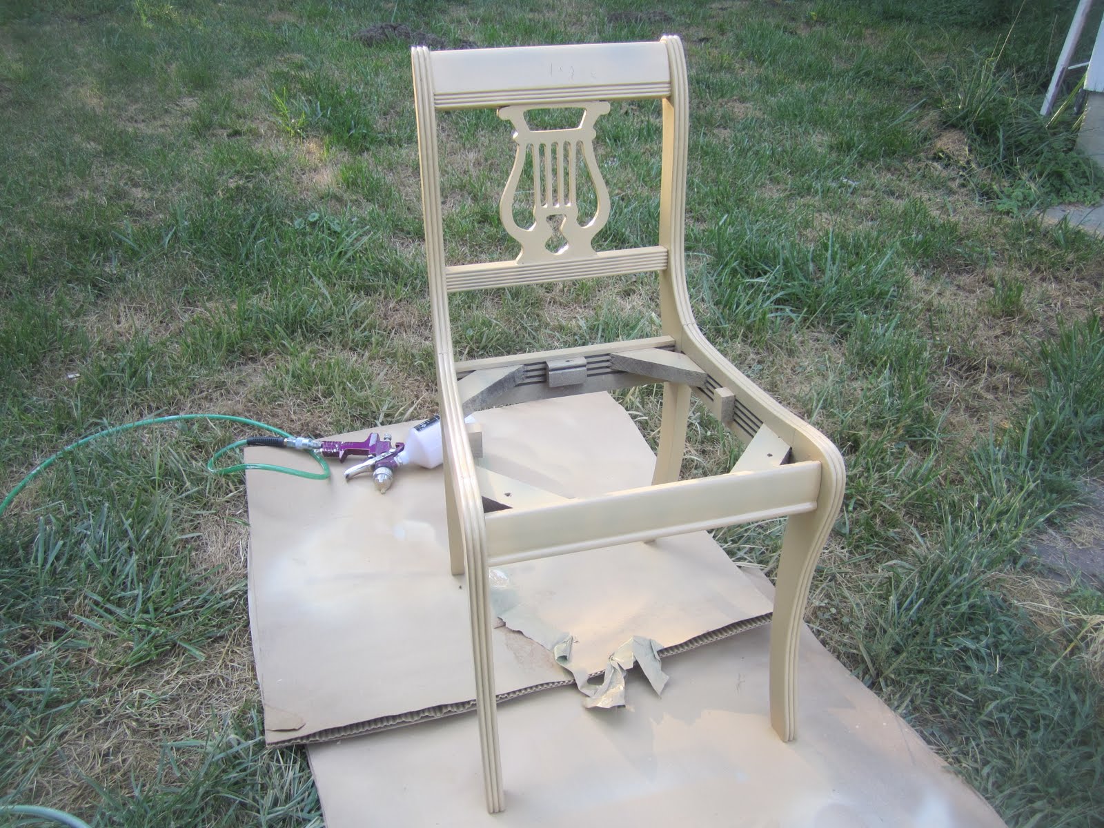 I did a chair almost exactly like this. I haven’t blogged about it, yet, but you can barely see it in this blog post: http://thebackyardbungalow.com/?p=938