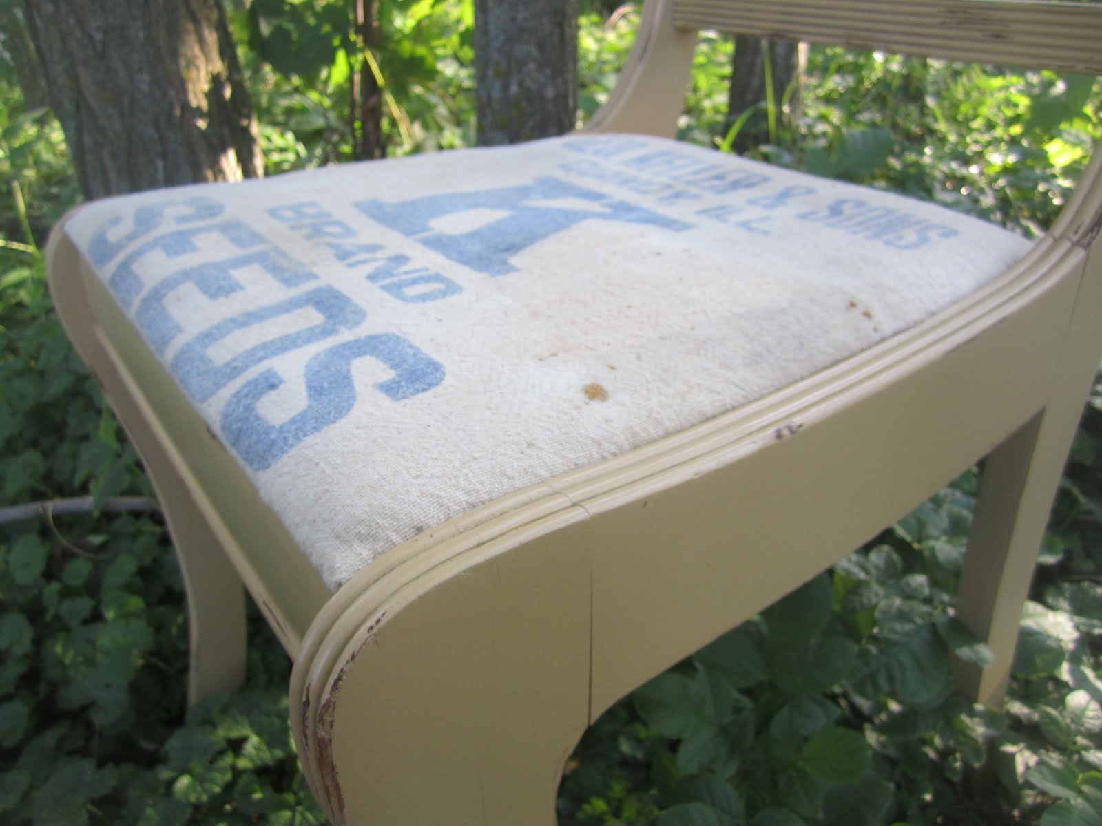 Your chair looks beautiful! I just love the grainsack touch to it! Coming over from Somewhat Simple and your newest follower!