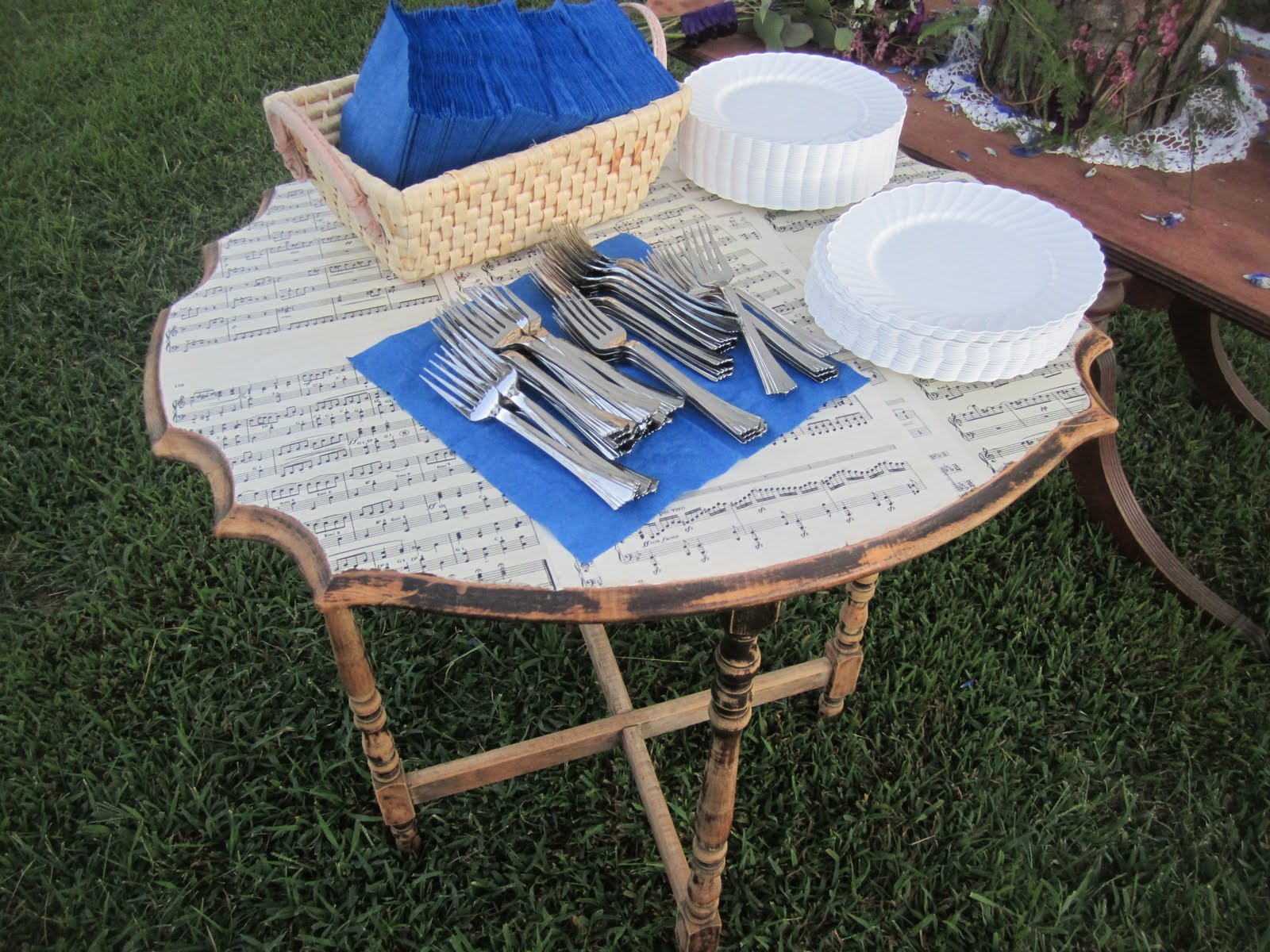 | Another of my decoupaged tables was perfect for holding dessert plates, napkins and silverware. |