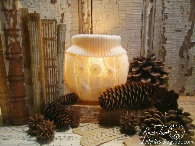 Very cute idea! I love how the glow of the candle shows the patterns in the sweater-and the pinecones are great too. I made a wreath out of a white scarf-I agree sweaters are so cozy for decorating in the winter. Great job!