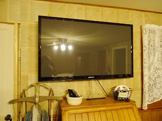 6. Hmmmm, I see that you need to use your head a bit and come up with something that will “hang” on the tv (a 47 inch box lid perhaps covered with Old Bible pages???), that would make it disappear!!! Good grief! That just looks…well YOU KNOW! You poor dear! Get something lightweight, foamboard or something, and make a cover for it!!! It would gently hang on it when not in use!