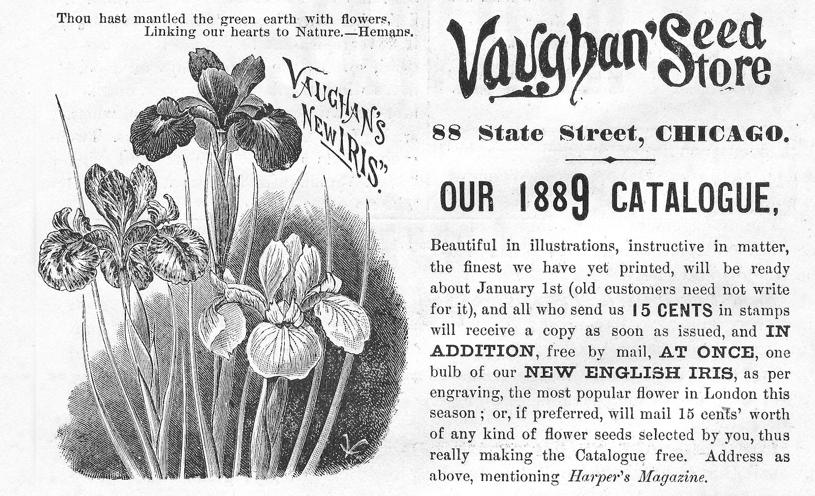 This advertisement for a seed store has a lovely image of irises on it. I’ve given it a black and white tone here.