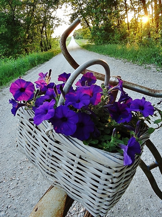 Perfect! I’m charmed by the bike, the road, the gate, the field, the flowers in her basket, the setting sun and her story. I always love a story and you obliged. Bravo! I would hate for her to ride off into the sunset just yet. I’m sure she has more to tell. I hope so anyway. Thanks for sharing this. I enjoyed it.