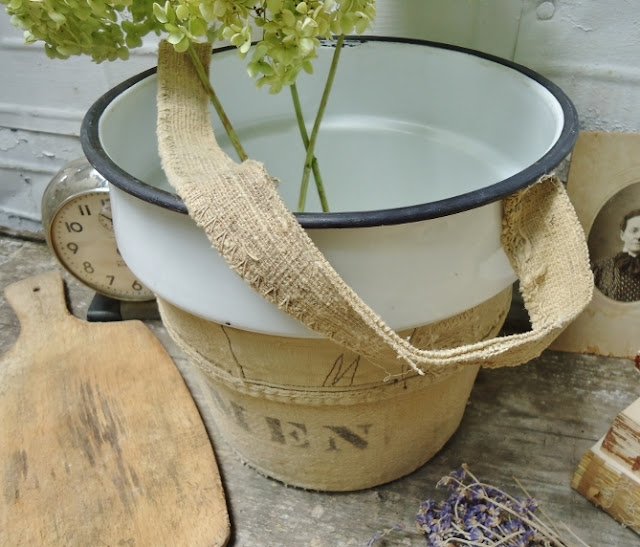 good idea! I too have a couple of dilapidated enamelware buckets. So it is really nice idea to wrap them with sack. thanks Angie!
