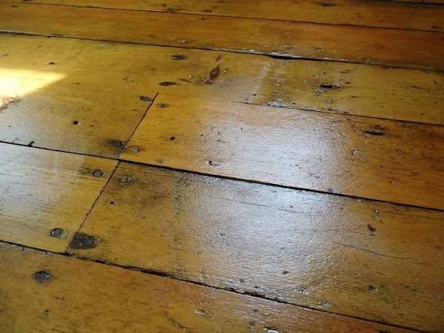 Love this floor! I once lived in an old schoolhouse and when we refinished the wood floor there were all these sets of three screw holes where the desks were attached. I thought they were charming! ~ Maureen