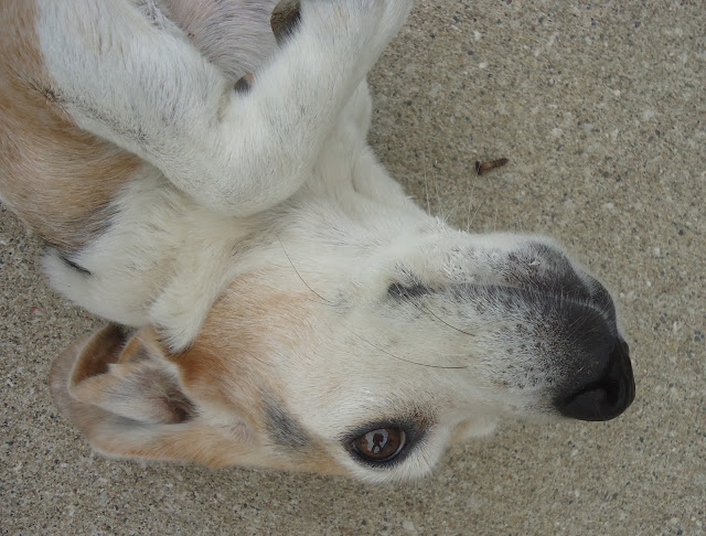 You silly girl, don’t you know you shouldn’t throw paint away like that. You need to leave the lid off and let the paint dry in the can, then throw it away. It’s better for the environment. Cute dog. We have a beagle that lives across the street that comes and visits twice a day to check out the cat food situation.
