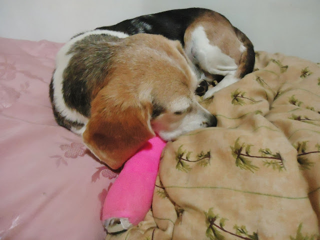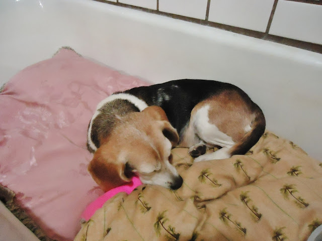Your little beagle with the wounded paw. Sad. Poor thing.