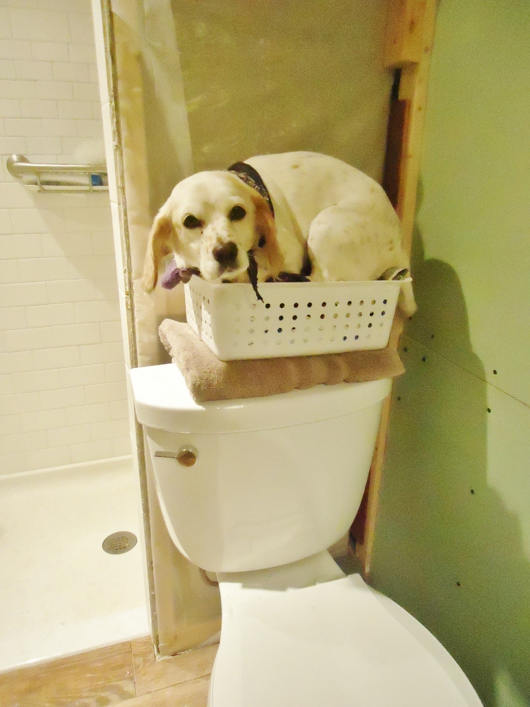 10. omg…i laughed out loud when i saw the pick of the dog in the basket on top of the toilet!! i was feeling bad for your other dog, and saw that- the just burst out! too darn funny!! wishing you some patience and sanity for the rest of hunting season!!