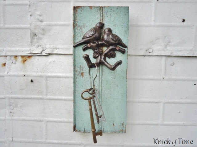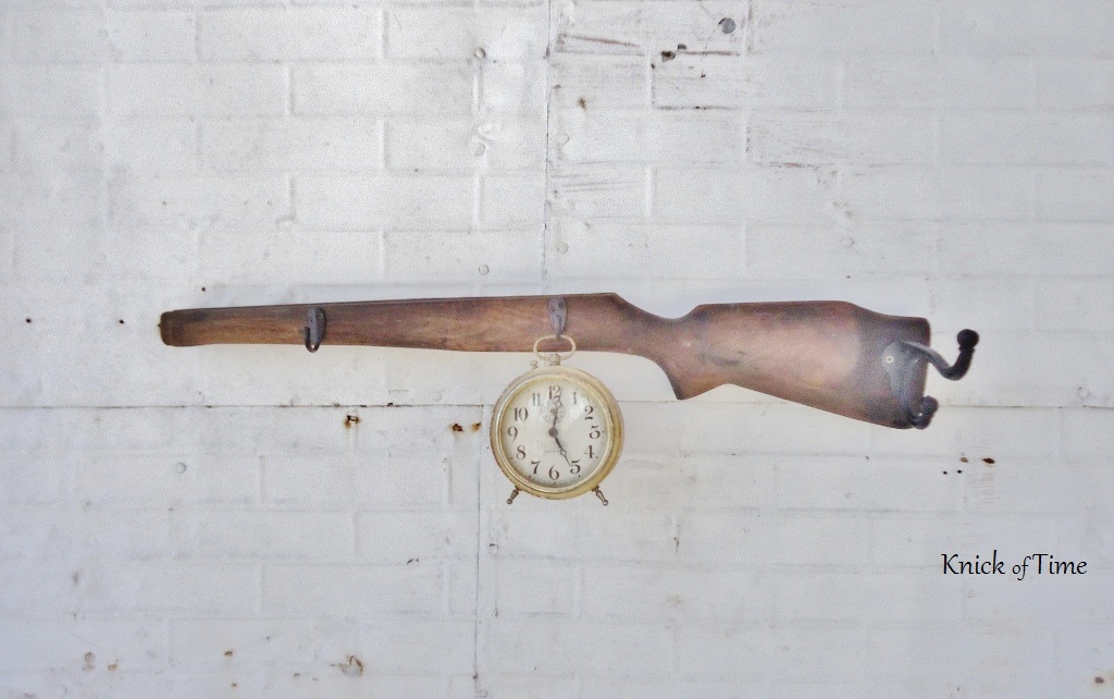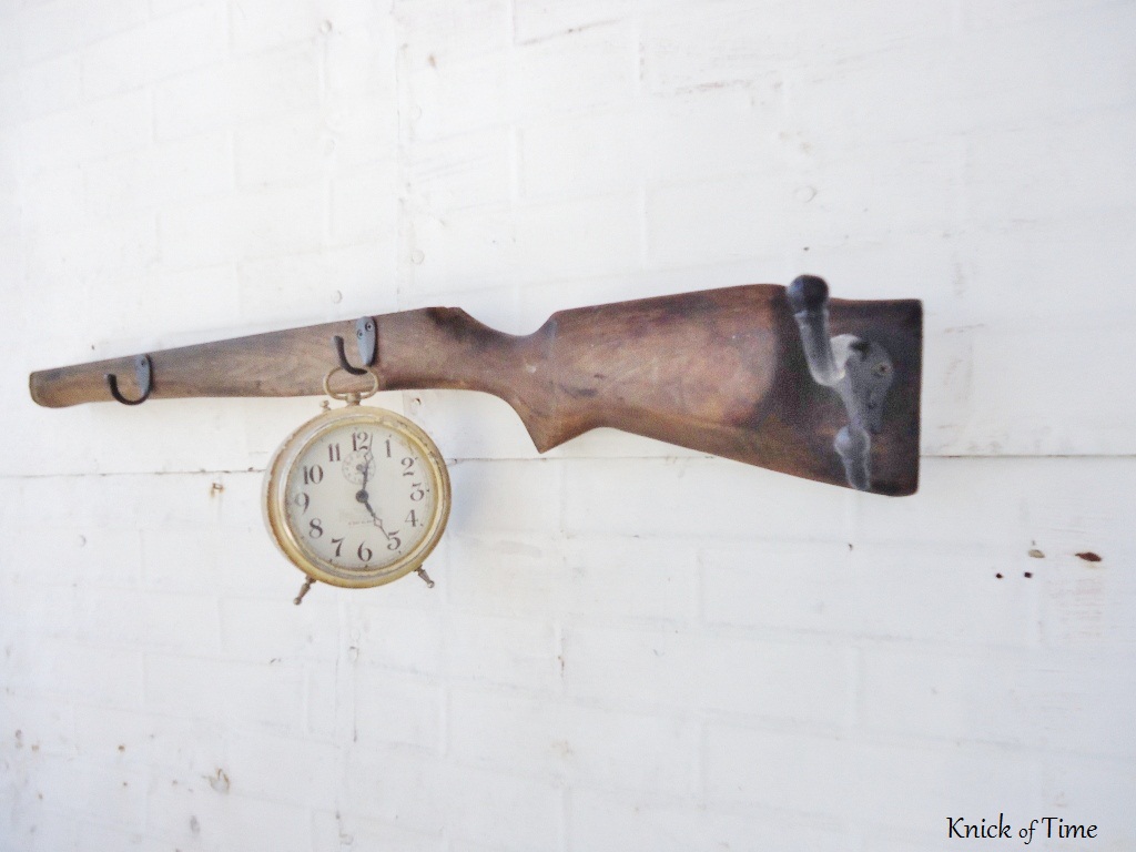 I love old wood, too! That was a great use of the gun, and I love all the racks. My favorite is the greenish one with the four little birds, soooo cute!