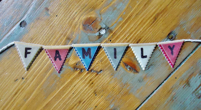 I could have created my own little pennants, but I loved these cute little stickers I found, so I just stuck them to a length of shipping twine.