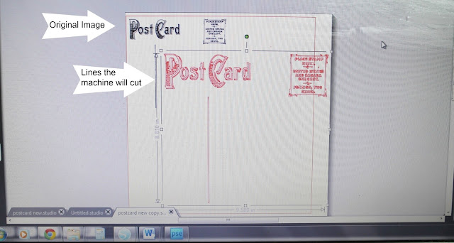 4) Click on, “select trace area”, then grab the whole image with by right-clicking and holding your mouse down. Click on “trace”, which will “read” the image and create the actual cutting lines (follow steps in photo).