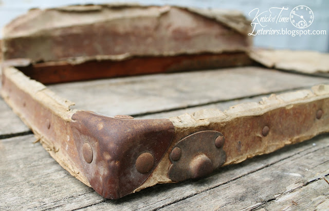 This is just the frame from half of what was once a cardboard suitcase. The metal corner protectors and remnant of the latches are wonderful. The cardboard is long gone, but the frame is wood, so I’m thinking this would make an awesome frame for an antique photo.