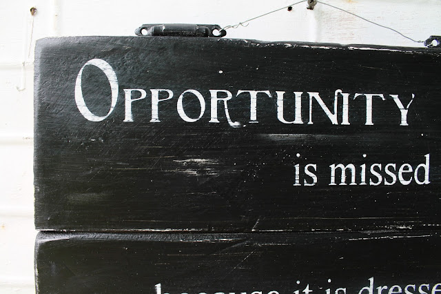 I came across a quote by Thomas Edison on Pinterest that has a whole lot of wisdom in it, and thought it would be the perfect quote for the door. I created a vinyl stencil with my Silhouette, using the font Birmingham Bold, for the words Opportunity and Work. It’s one my favorite new fonts to use.