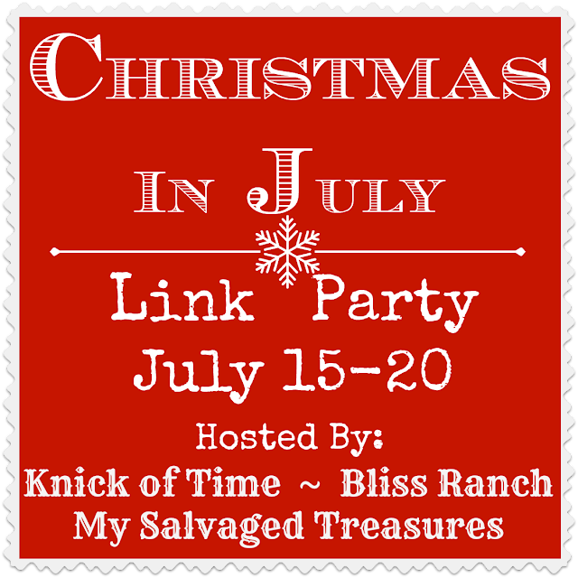 7. I am ready to start early to finish new decorations – so much inspiration here. Our city is having Christmas in July this week also with Christmas decorations reduced and new merchandise for gifts displayed. I feel it takes the pressure off the December last minute scurry! Thanks to all of you for hosting! Merry July!