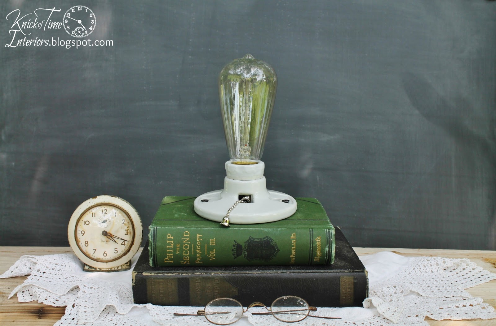 I used it as a backdrop for this photo, and I created another Edison Style Bulb Book Lamp last week, and really wanted to use a different backdrop – one that would make the light bulb stand out more than it does against the white wall. I decided a chalkboard backdrop would be perfect, but none of my chalkboards are large enough.