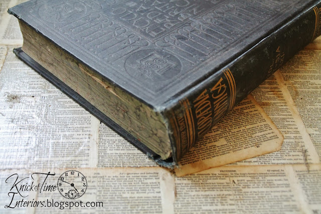 Such was the case of a bunch of antique encyclopedias I brought home a few years ago.  I didn’t purchase them on purpose – they were included in a box lot with other antique books that I did want.  While the raised image on the cover is somewhat interesting, it isn’t enough that you’d want to display it.  The color of the books weren’t quite black and weren’t quite blue – they were something dingy-looking in between.
