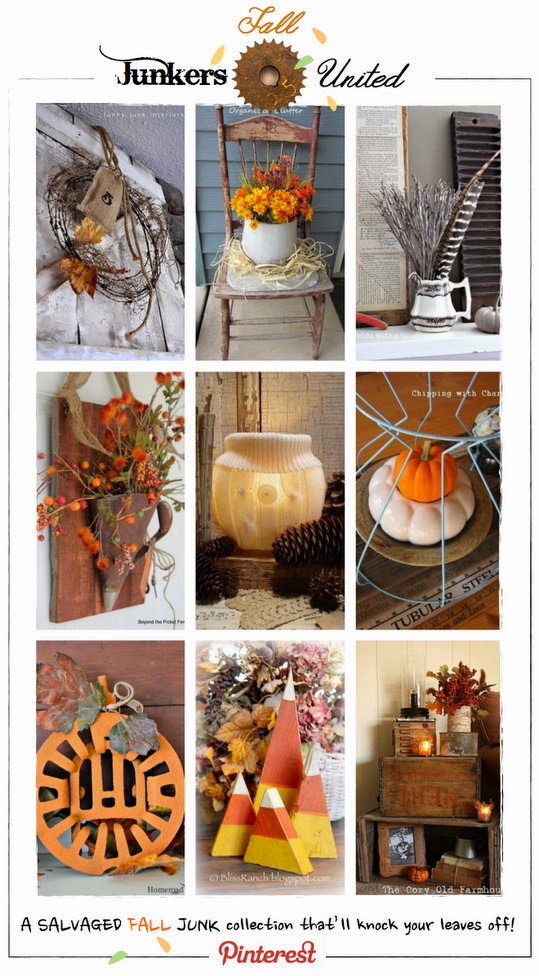 The Junkers United Fall Party is still open, so link up your favorite Autumn-inspired projects created from “junk”. Our team is still busy pinning our favorite projects on the Fall Board on Pinterest. I’ll also be sharing some of my favorite links on my Facebook page throughout next week.