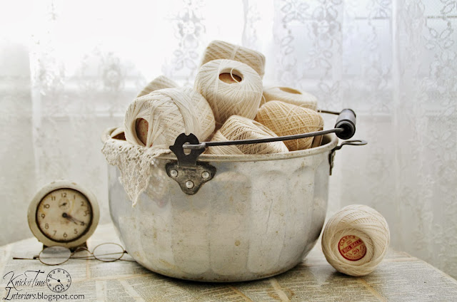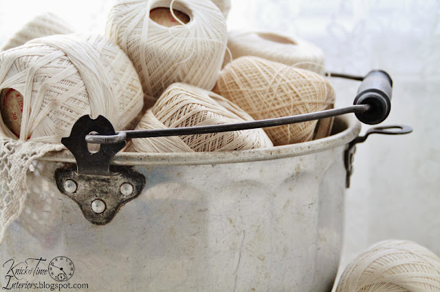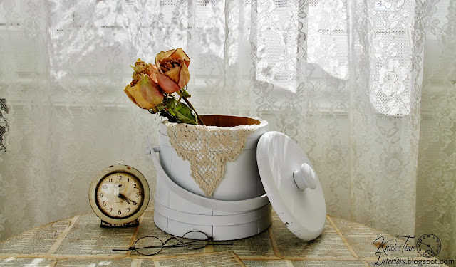 Angie, I think your “banded bucket” is called a Firkin’. I found one too and yup, painted it white and filled it with dried hydrangeas. Thanks to you I think I’ll add the doily.