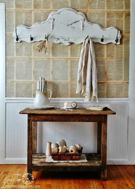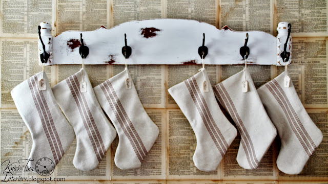 I created this antique bed footboard coat rack that I planned to use to hang our Christmas stockings on, but I had it listed in my shop and it sold several weeks before Christmas.