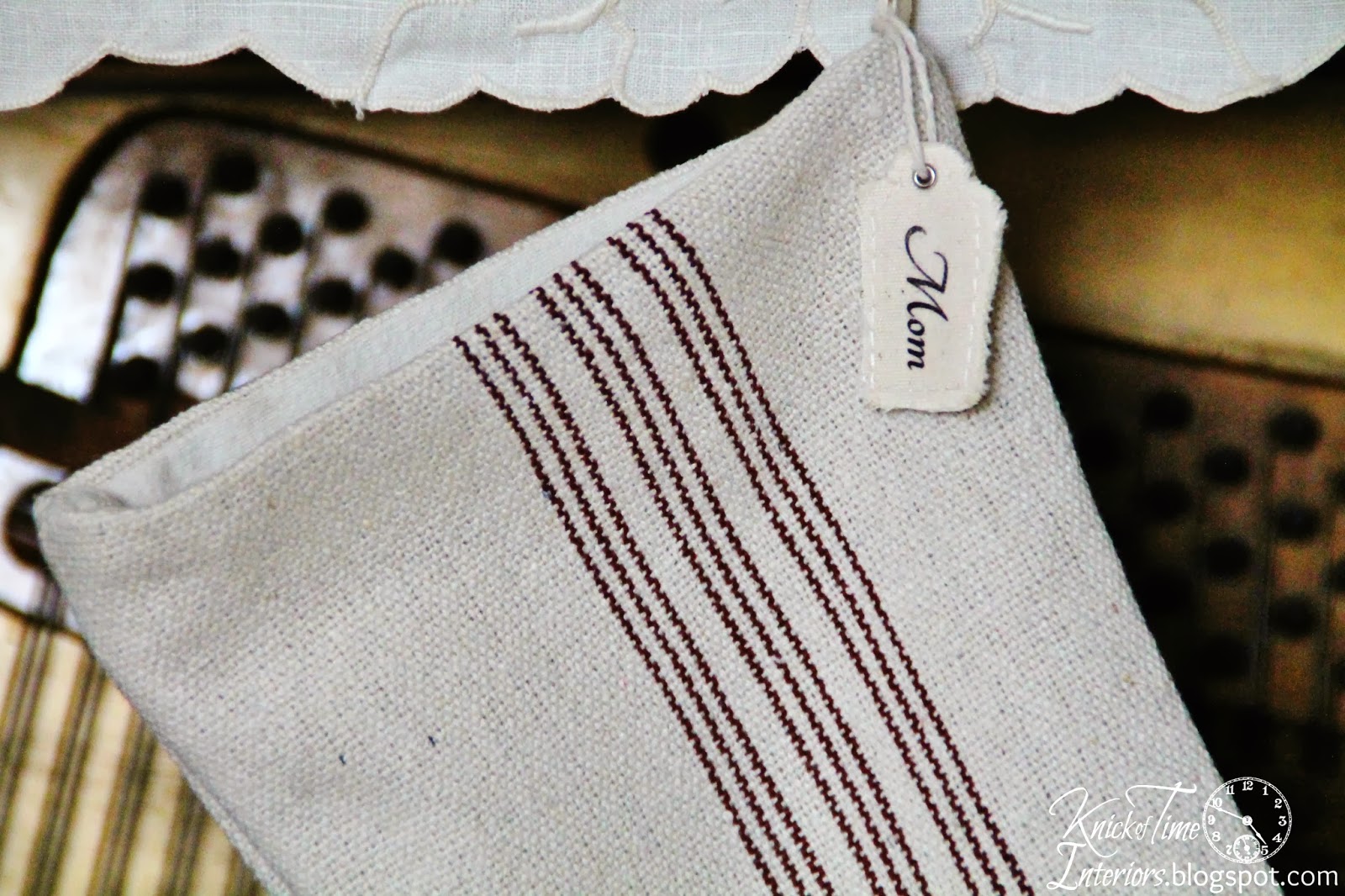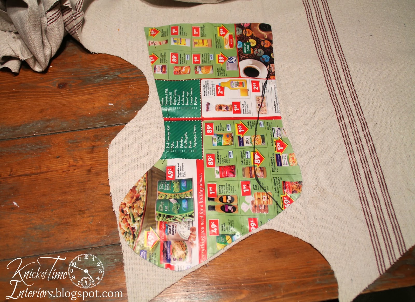 These are really easy stockings to make – you just have to think carefully when assembling them to sew, so all the seams are hidden inside and the hanger faces upward. I’ve used this same pattern many times over the last 15+ years. I wore out my original pattern, so I traced a new one on a newspaper ad insert. Previously, I’ve always added a cuff at the top, but wanted to keep these grain sack Christmas stockings more old-fashioned looking, so I didn’t add a cuff.