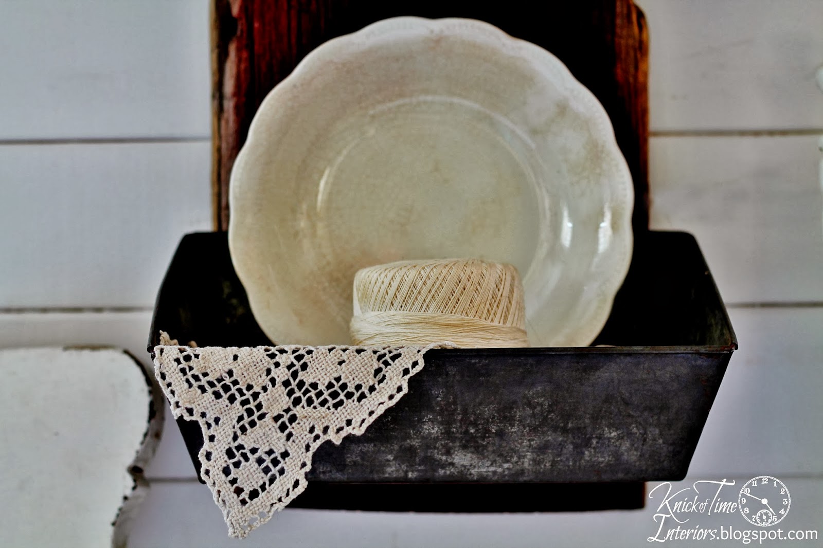 Being snowed in for the last several days has given me lots of time to be productive and I’ve brought home bunches of “stuff” from auctions & thrift stores recently, including a plank of antique barn wood and a bunch of antique bread pans. I love turning bread pans into wall bins, and the barn wood was the perfect backing to connect them to.