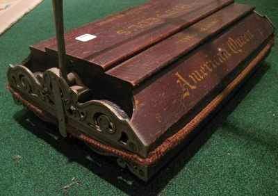 It was an antique Bissell floor sweeper.  This photo isn’t my sweeper, because I forgot to take a photo before I took it apart, but mine was just like it.  When I brought it  home from an auction several years ago, no one bid on it, so it got added to another item I did bid on, which is how I ended up with it in the first place.  I’m just happy I found a use for some of the parts.  I still have 2 of the adorable wheels, as well as the handle, so I’m brainstorming some ways I can use them.  Did anyone correctly guess this is what they were from?