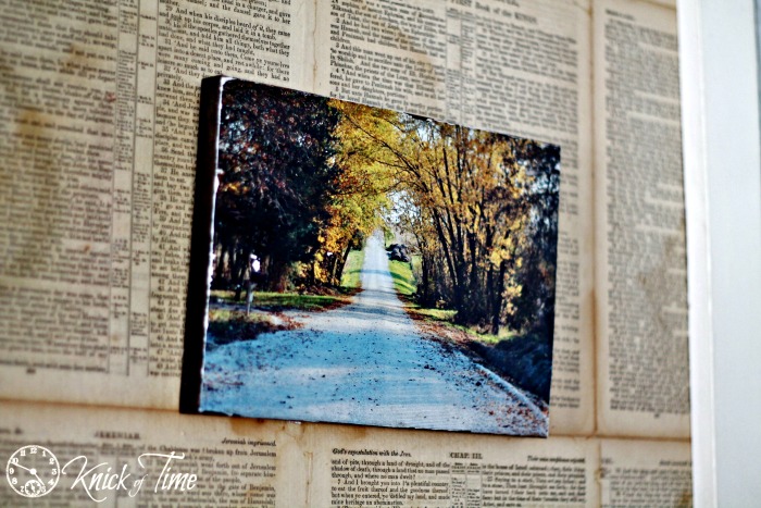 Did you take any photos this autumn, while the pretty leaves were still on the trees? I’m so glad I did. It’s a great excuse to get outdoors and enjoy the beauty that surrounds my home. Two of my favorite shots were of the view looking down the gravel road that’s in front of our house. One of the shots was taken on a beautifully foggy morning, and the other was taken on a bright and sunny day. Taking photos doesn’t do any good, if you don’t preserve them in some way to enjoy them, so I set out to do that right away, before I forgot I had taken the photos.