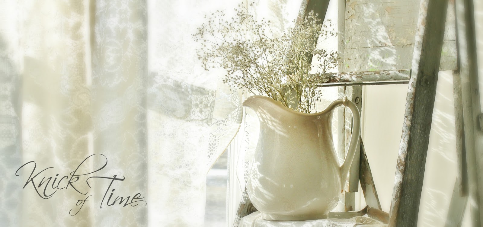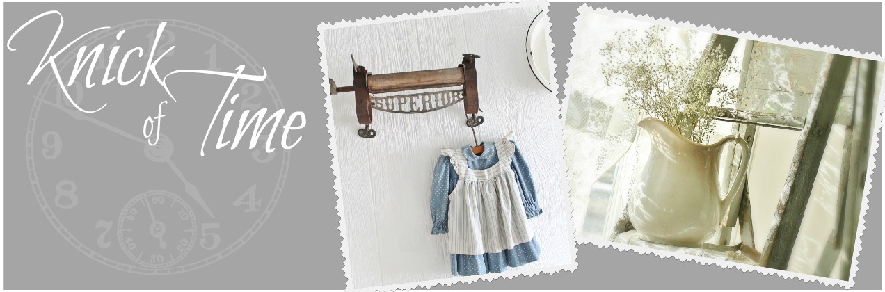 I changed my header at this point, to accommodate two photos, on a gray background. The first 2 photo header included the same ironstone pitcher on a ladder photo, with a photo of my daughter’s baby dress hanging in our laundry room.