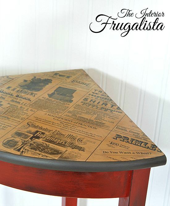 Using a clean rag, I rubbed dark wax over the entire table, including the paper tops, to give it an aged appearance.