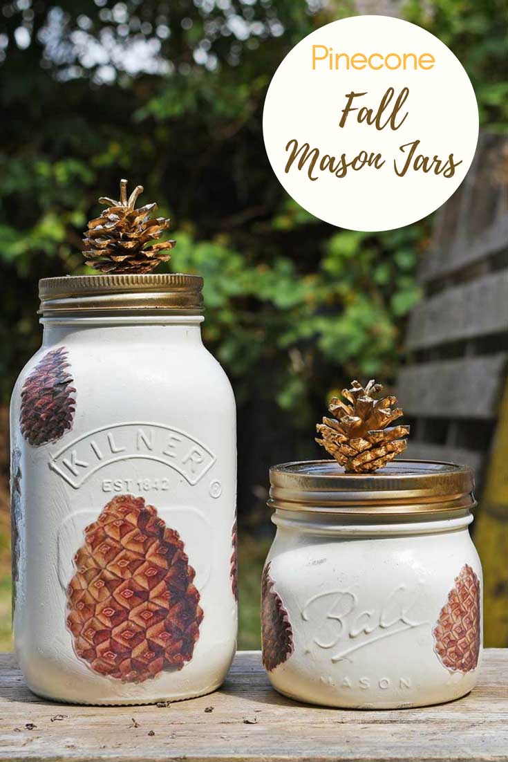 Unique Fall Mason Jar Decoration with Pine Cone Crafts – Pillar Box Blue