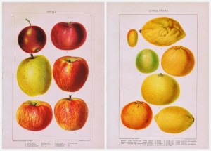 Here are 2 beautiful antique fruit image printables. They are from a 1903 encyclopedia. I think these would look wonderful as framed kitchen wall art, or used as iron-on transfers on flour sack towels. {The individual, high-resolution images are here: APPLES, CITRUS {PIN this image now & Print later|}