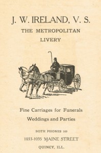 This advertisement for the Metropolitan Livery, which provided carriage rides for funerals, weddings and party came from an early 1900 hymnal. I rarely see advertisements in hymnals, so this was unique to me. Here’s just the carriage image. I’d love to enjoy a drive to a party in one of these! Blessings, Angie