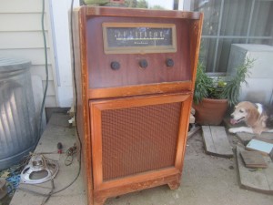 So, yesterday I told you that I really wasn’t thinking when I bid and won this antique radio at an auction. I didn’t have any great reason for buying it – it was cheap and kinda cool is all I can think of. Well, sometimes…it pays to check your brains at the auction door! Here he is today. His insides (record player and radio box) have been removed. I sanded him down all over, repainted with Valspar Churchill Hotel Wheat, {Read More}
