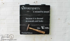 When we remodeled our kitchen, my husband rebuilt the existing cabinets to make the cabinet under our sink, but the previous doors no longer fit, so he built some out of pine boards. He connected several together to make them look like worn plank boards, but honestly, neither of us was in love with them. Later, he made new cabinet doors that were fronted with antique ceiling tiles. I came across a quote by Thomas Edison on Pinterest that has {Read More}